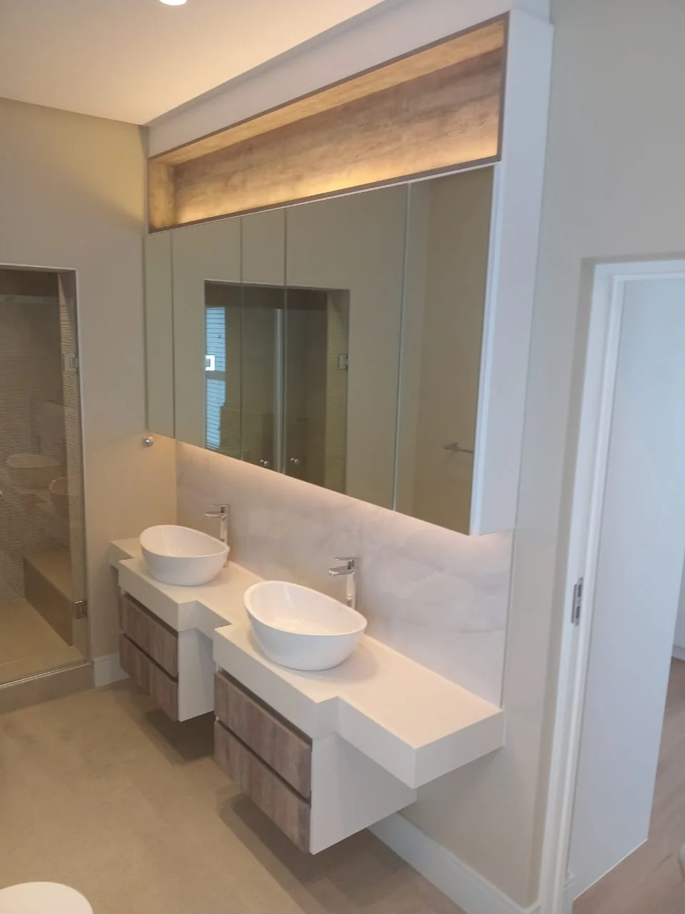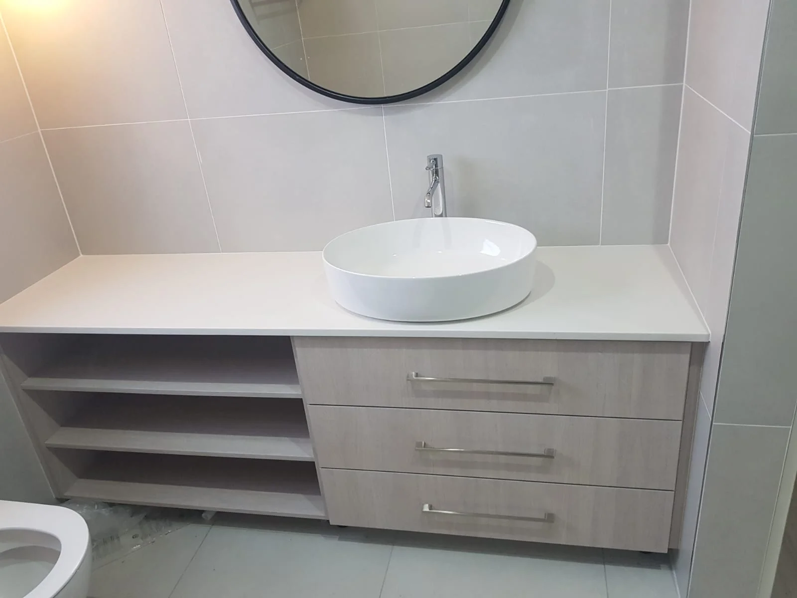 At Solid Edge Cabinetry, we believe that exceptional woodwork is the foundation of any well-designed room. From bespoke residential kitchens and custom bathroom vanities to complete commercial office fit-outs, our team builds every piece with exact precision right here in our workshop. Browse a selection of our recent installations below to see how we combine premium materials with expert craftsmanship to deliver durable, perfectly tailored cabinetry for our clients.